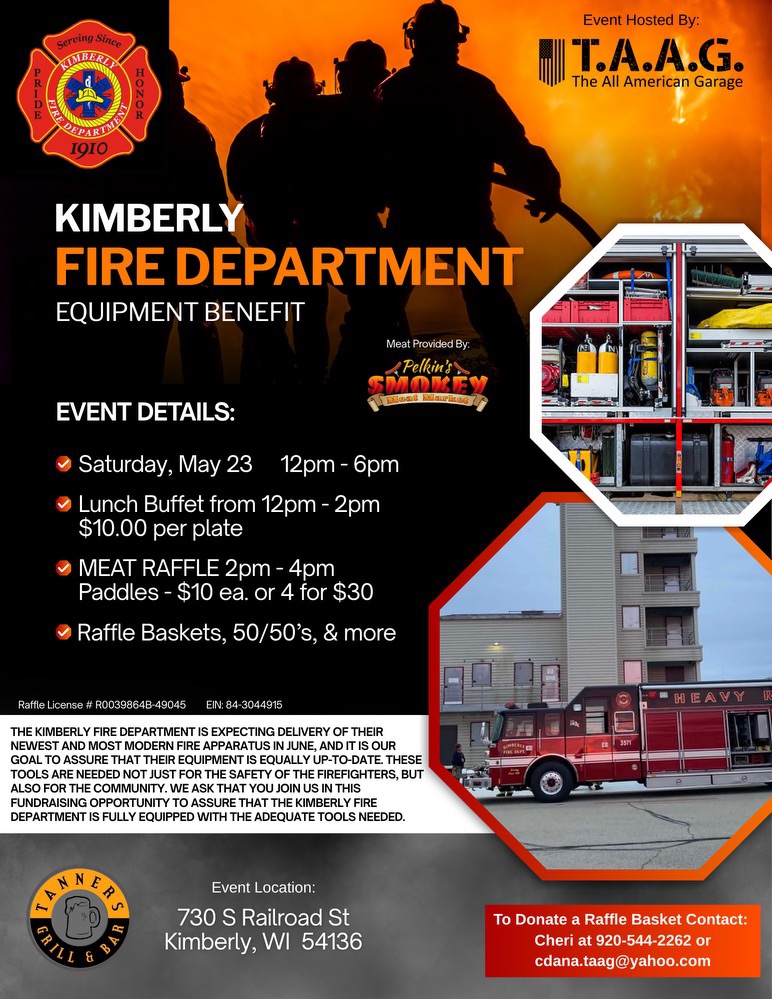 Join us on Mary 23rd for a Meat Raffle Fundraiser put on by T.A.A.G benefiting Kimberly Fire Department!