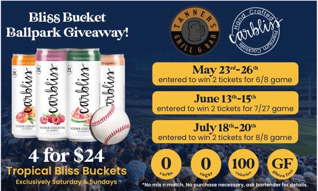 Join us Pool Side this summer on the weekends of June 13th – 15th and July 18th – 20th to enjoy mix and match Tropical Bliss Buckets 4 for $24 and be entered to win Brewer Tickets!